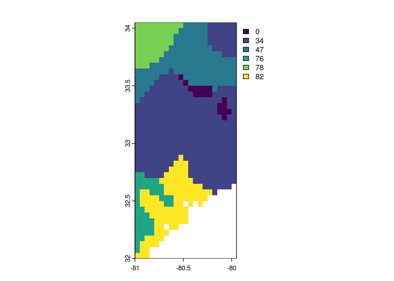 print(head(subset)) xllcorner yllcorner cellsize nrows ncols band units