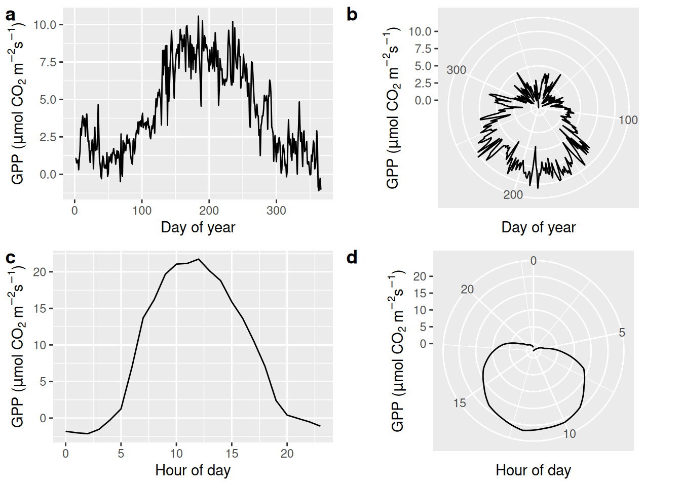 Visualising diurnal and seasonal cycles of GPP