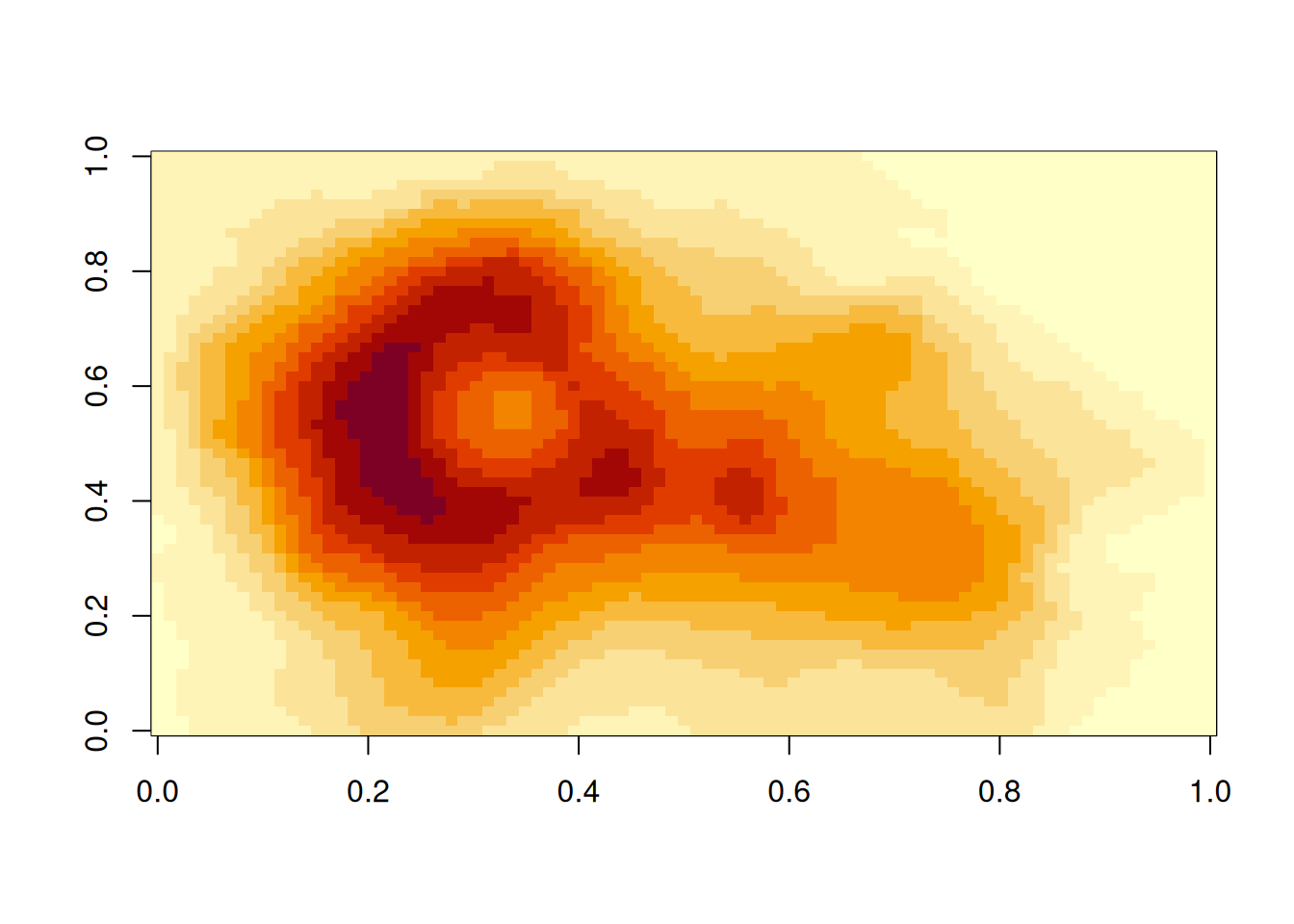 The base-R function image() can be used to visualize such spatial data as images.