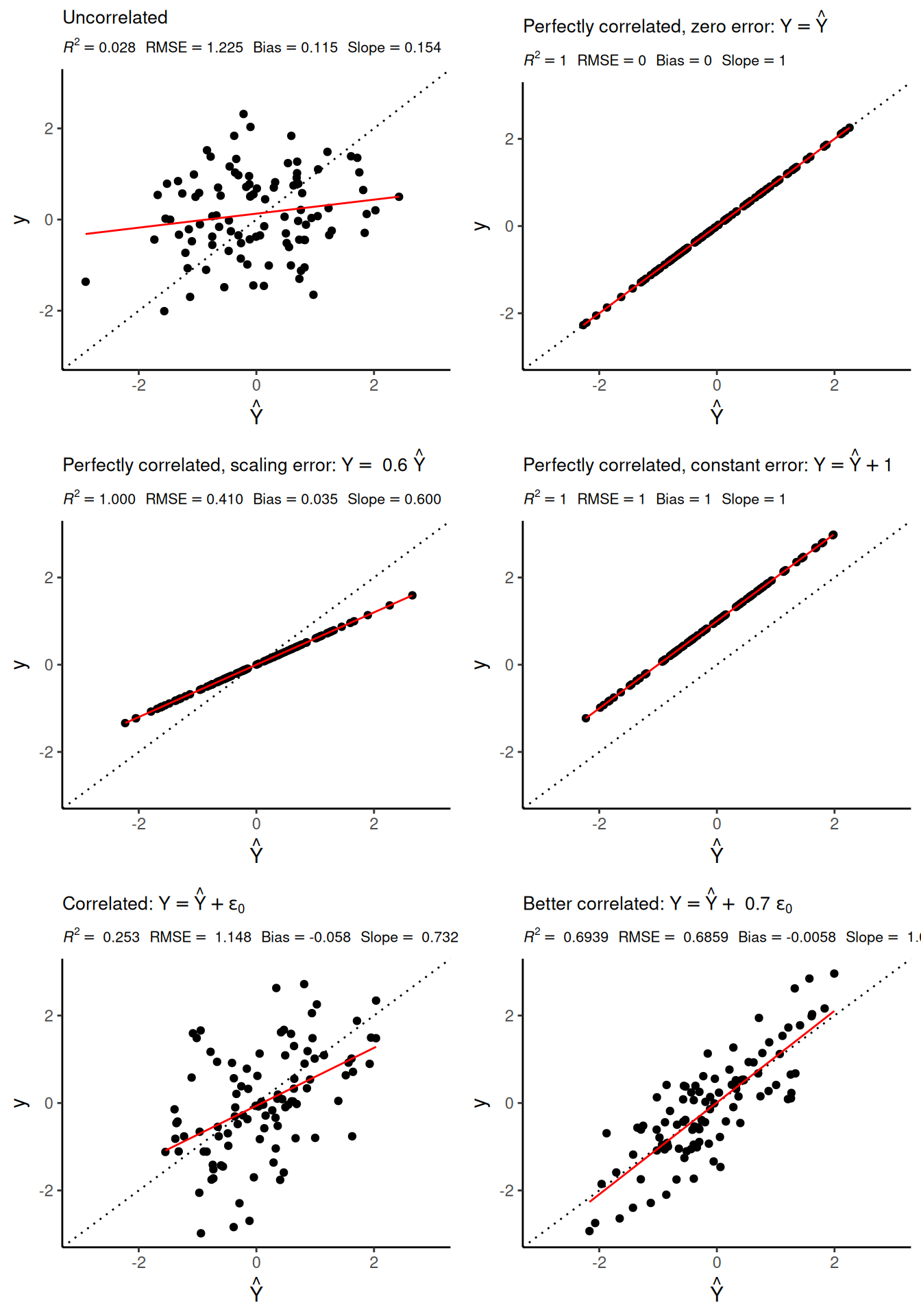 The following metrics are widely used and highlight different aspects of our modeling goals.