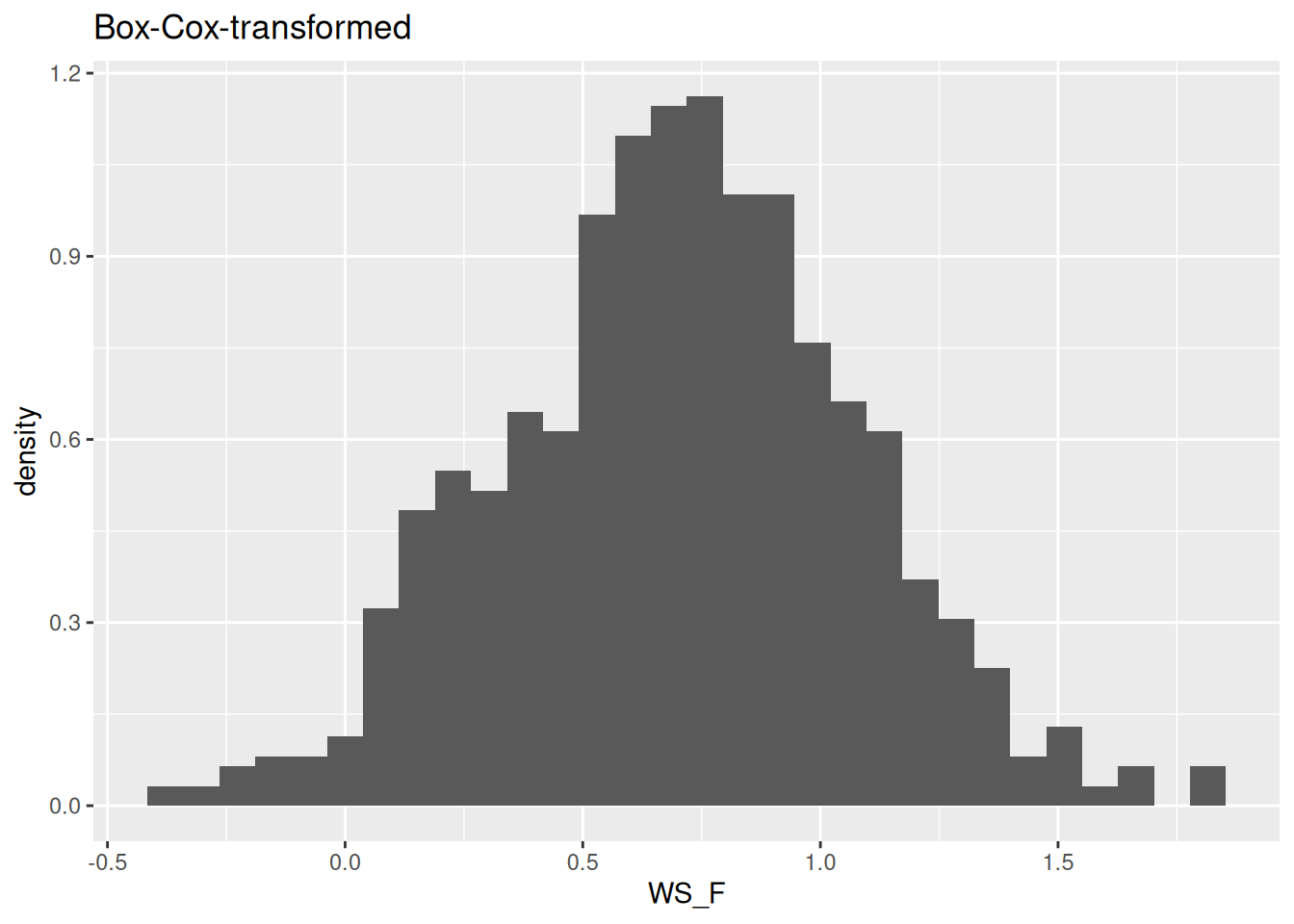 - Some of the predictors are distintively not normally distributed. Let’s Box-Cox transform all predictors as a pre-processing step.